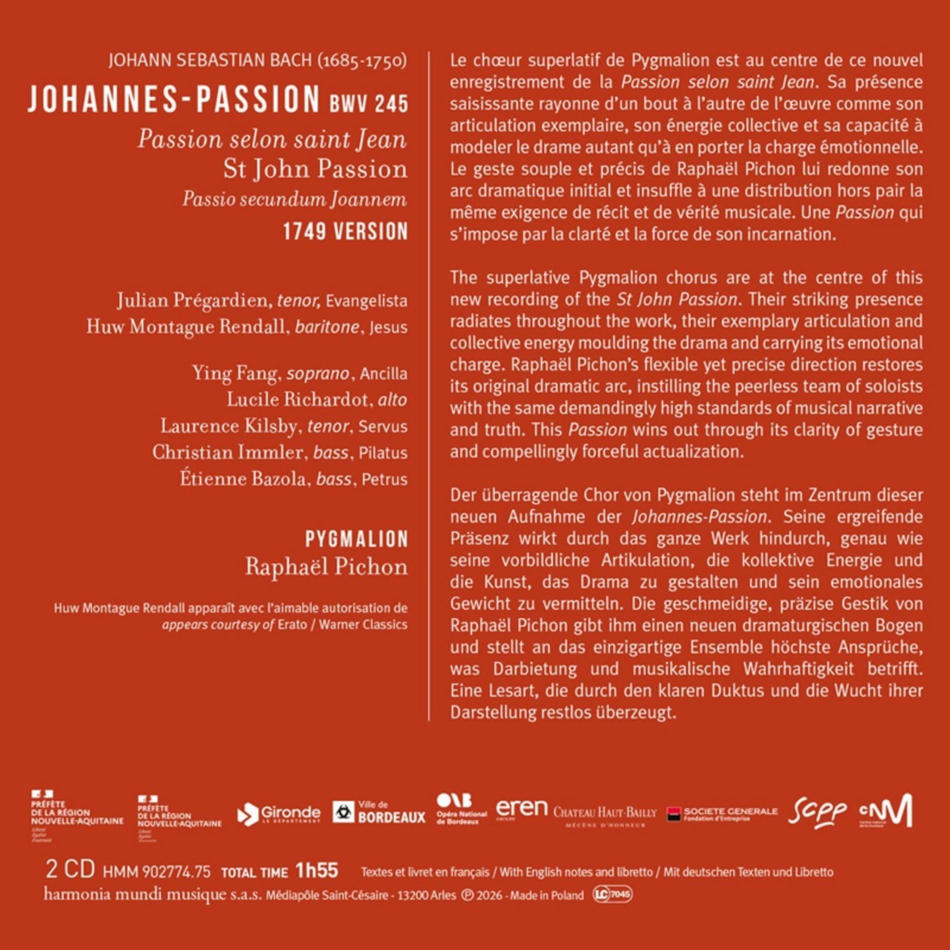 BACH J.S.:JOHANNES-PASSION/PYGMALION/PICHON 2CD