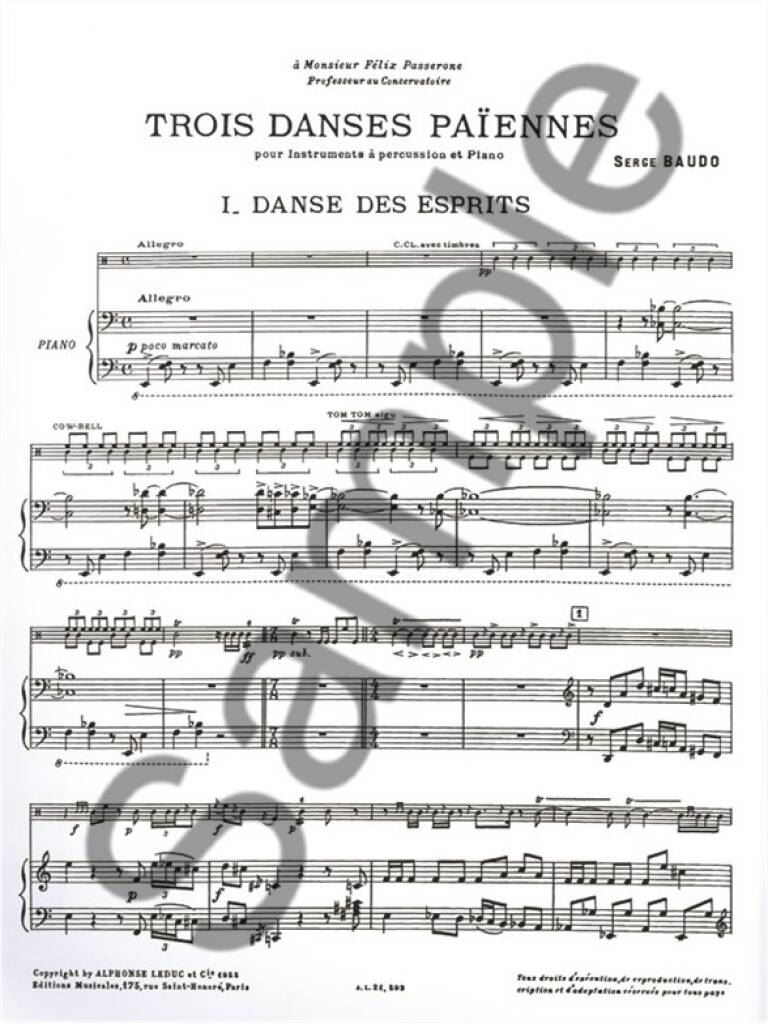 BAUDO:TROIS DANSES PAIENNES iz kategorije skladbe sodi med odlične tolkala.
