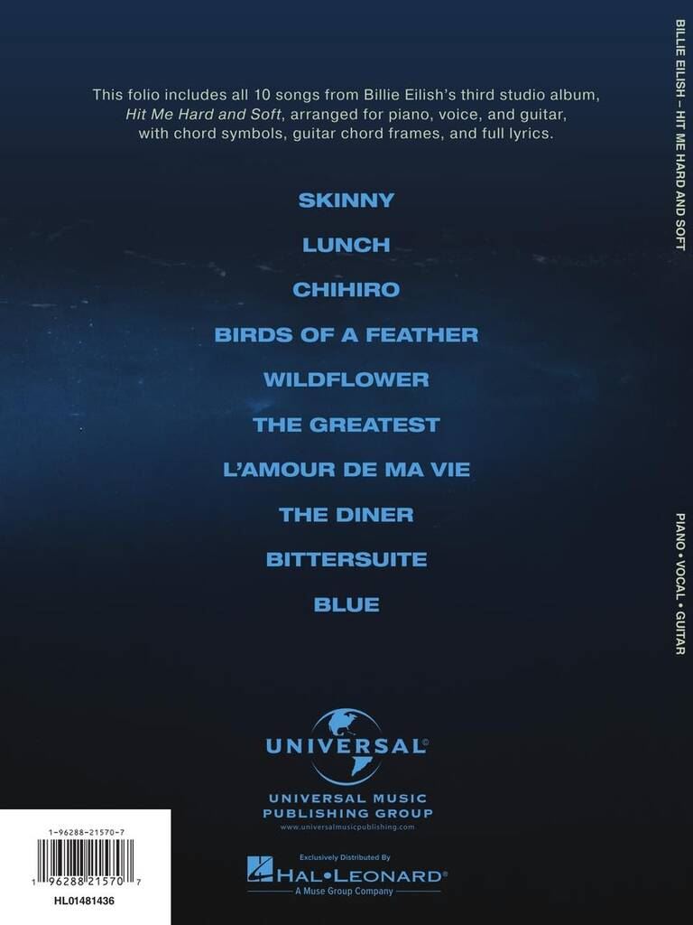 BILLIE EILISH/HIT ME HARD AND SOFT PVG iz kategorije zabavna glasba sodi med odlične Notna literatura.