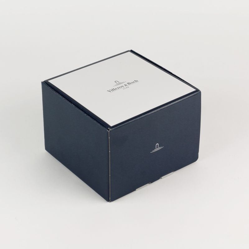 Skodelica v ekskluzivnem Henlejevem dizajnu v obliki vrčka. Bel, vrhunski porcelan tradicionalne blagovne znamke Villeroy & Boch s potiskom v različnih odtenkih modre barve. Primerna za pomivanje v pomivalnem stroju in mikrovalovno pečico, s prostornino 250 ml. Popolna kombinacija dizajna in profesionalne funkcionalnosti za maksimalen užitek pri pitju. Izdelano v Nemčiji. Dobavljeno v visokokakovostni darilni škatli.