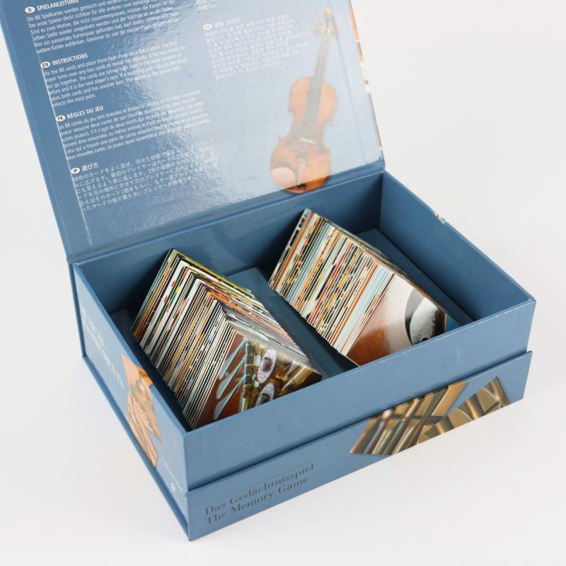 S 44 pari slik (88 kartic) v zelo uporabniku prijaznem predalu za shranjevanje v trdni, visokokakovostni škatli z magnetnim zapahom (21,7 × 16,0 × 7,6 cm). Vključuje opise slik in navodila za igro. Za 2–8 igralcev, starih 8 let in več.