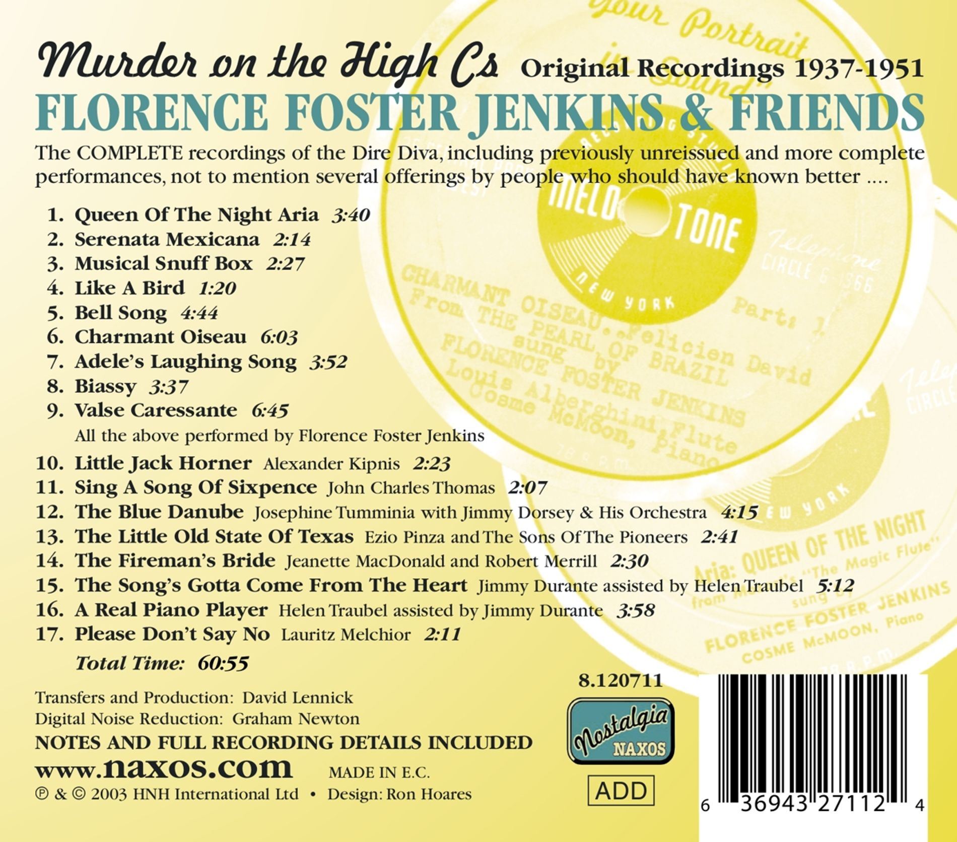 FLORENCE FOSTER JENKINS MURDER ON THE HIGH Cs iz kategorije klasika in slovenska narodna sodi med odlične cd.