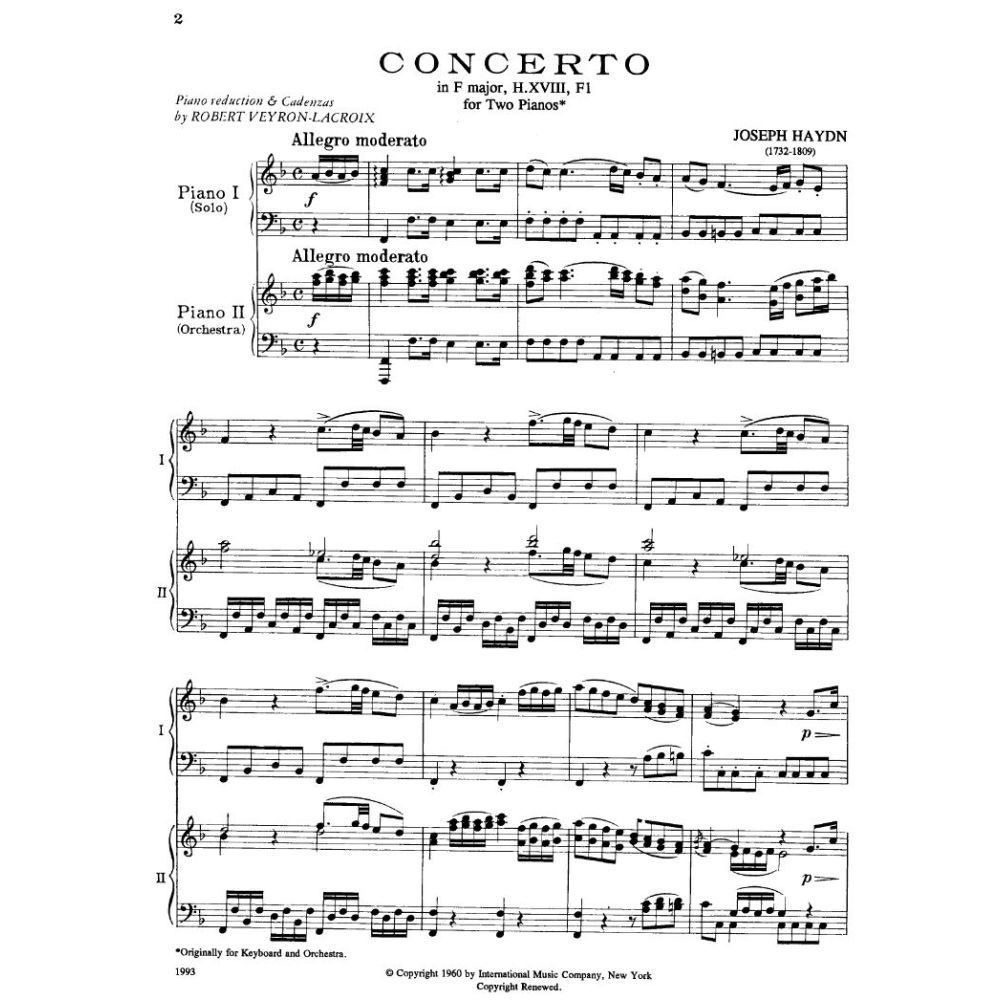 HAYDN:CONCERTO IN F MAJOR H.XVIIIFI FOR TWO PIANO VERSION iz kategorije skladbe, sodi med odlične klavir.