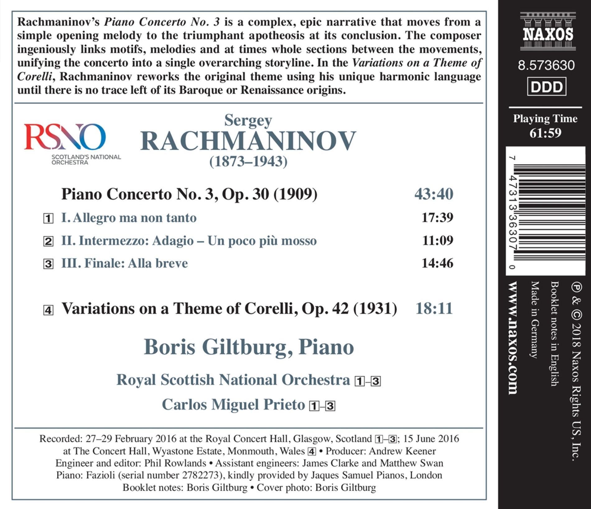 RACHMANINOV:PIANO CONCERTO NO.3/BORIS GILTBURG iz kategorije klasika in slovenska narodna sodi med odlične cd.