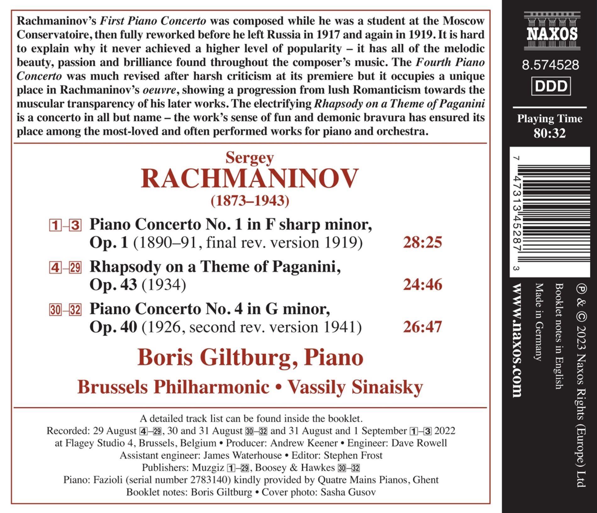 RACHMANINOV:PIANO CONCERTOS NOS.1 & 4/BORIS GILTBURG iz kategorije klasika in slovenska narodna sodi med odlične cd.