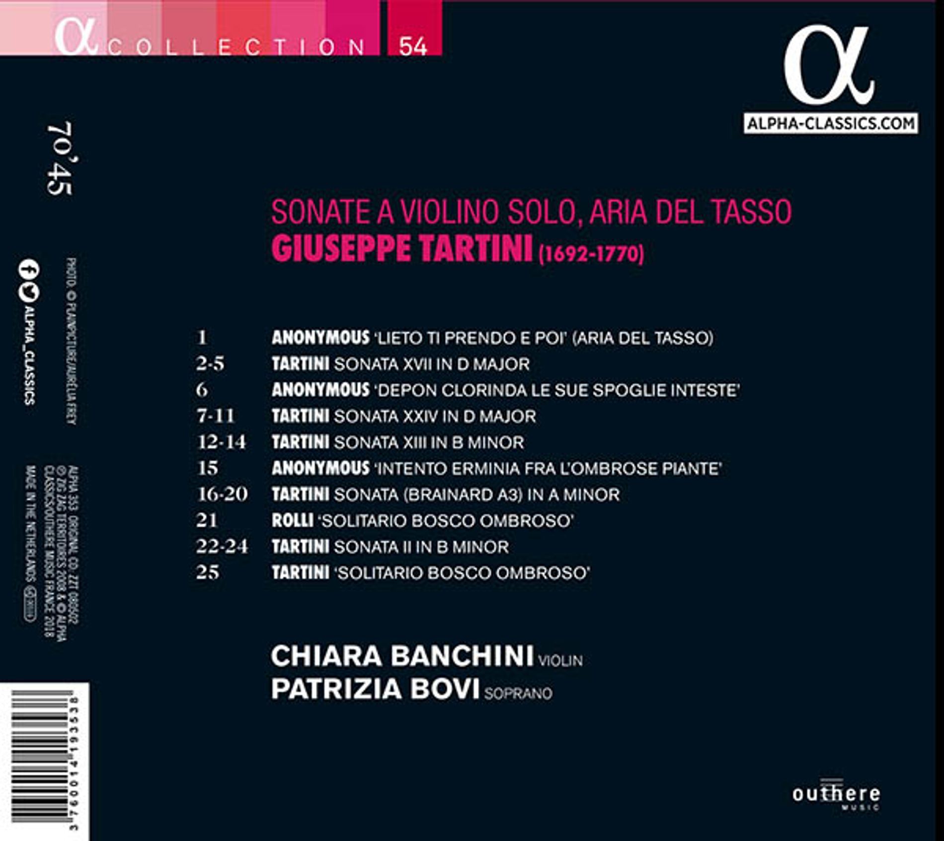 TARTINI:SONATE A VIOLINO SOLO ARIA DEL TASSO/BANCHINI/BOVI