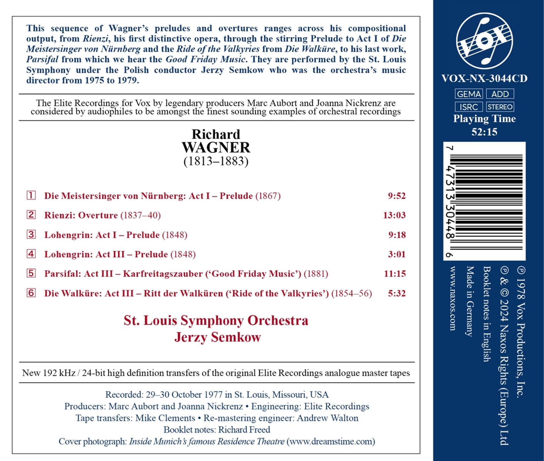 WAGNER:PRELUDES AND OVERTURES/SEMKOW iz kategorije klasika in slovenska narodna sodi med odlične cd.
